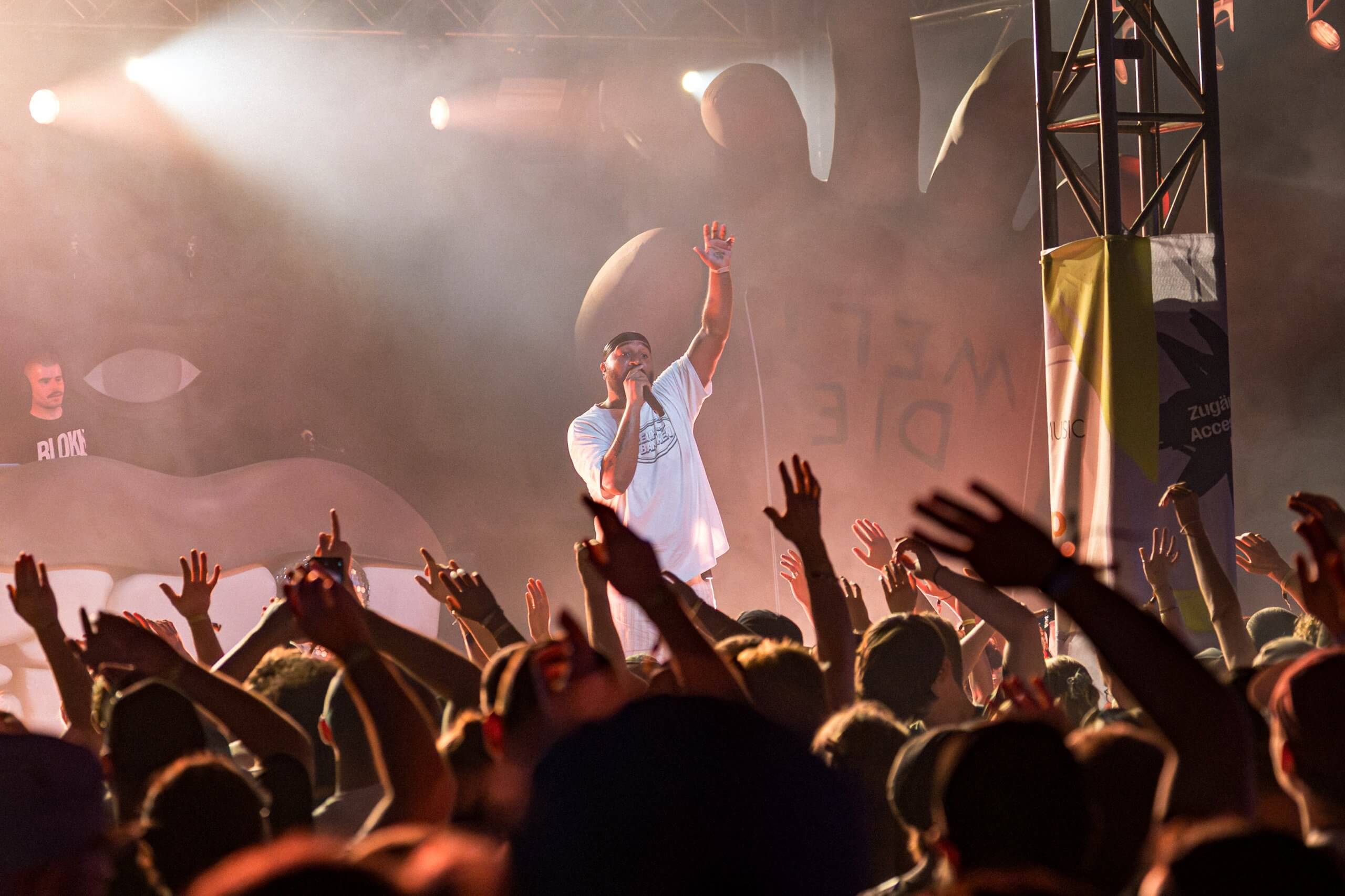 Im Anschluss wartet echter Boom-Bap-Hip-Hop auf das Festivalpublikum: Dilated Peoples aus Los Angeles auf der Hauptbühne. Sie spielen gleich als zweiten Song einen ihrer grossen Hits «You Can’t Hide, You Can’t Run». Auch hier hat es bereits am frühen Abend eine grosse Menschenmasse vor die Mainstage geschafft. Die drei Herren auf der Bühne bringen viel Energie mit und animieren das Publikum. Dieses macht artig mit, ist aber doch noch etwas träge. Das mag an der Hitze liegen – oder mancherorts auch an den Joints, die hie und da herumgereicht werden. Zum Abschluss spielen Dilated Peoples natürlich noch ihren grössten Hit, «Worst Comes To Worst».