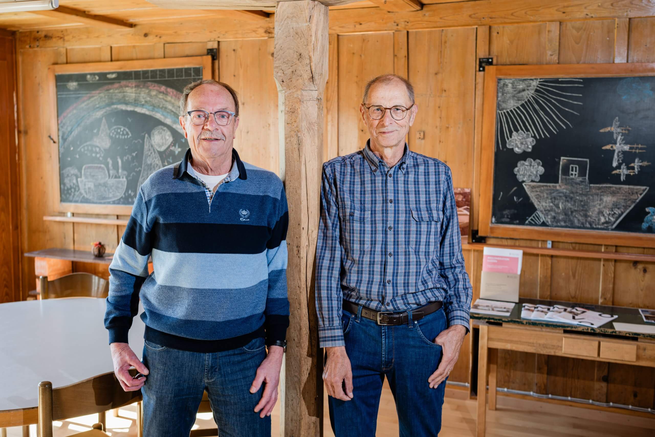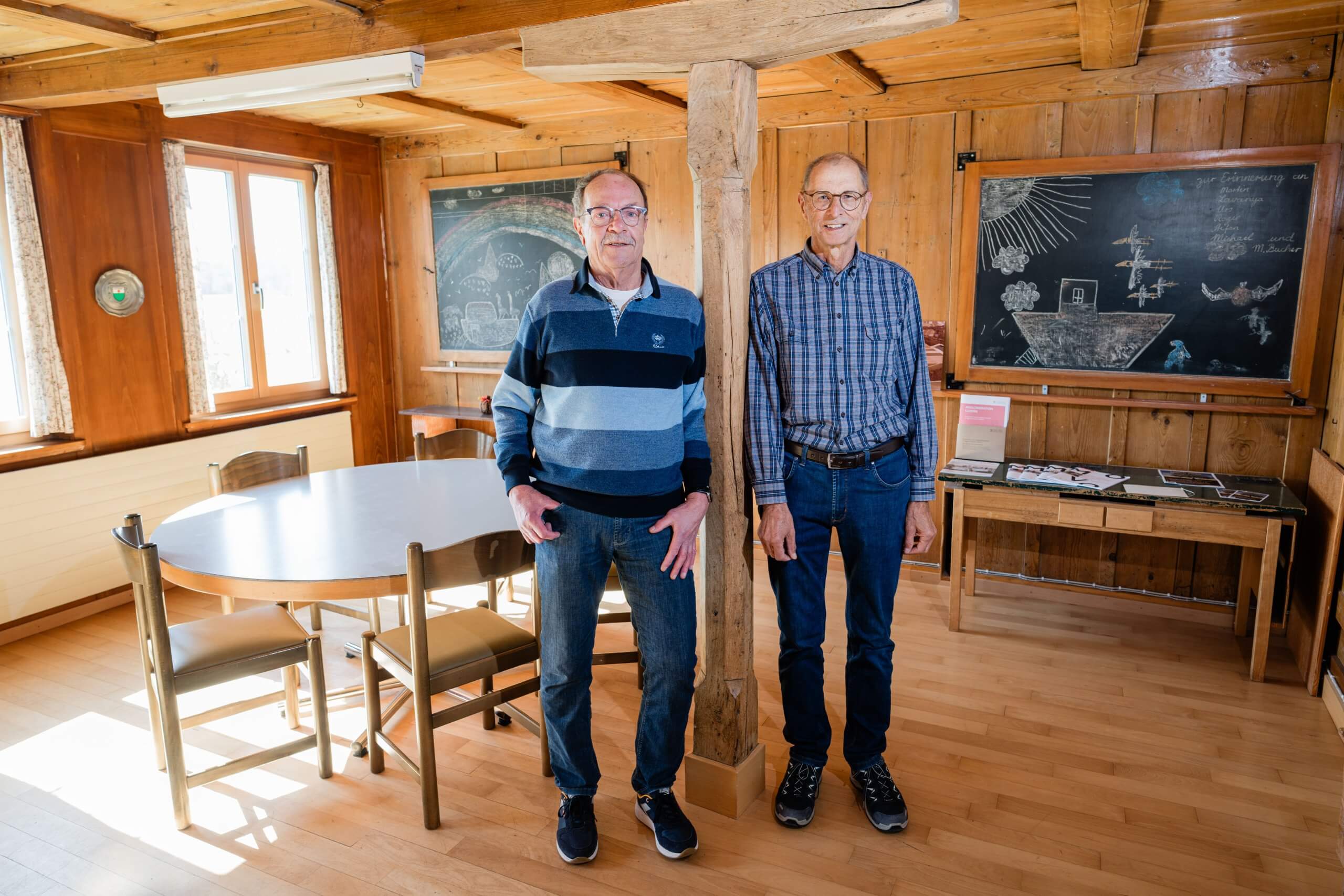 Jetzt stehen die beiden Männer wieder an der gleichen Stelle wie damals – dort, wo ihr Pult stand, wo sie im staubigen Zimmer Turnübungen machten. Durch das Fenster fällt Licht auf die alten Holzbalken. Käser lächelt: «Wir hatten eine schöne Jugend.» Weyeneth nickt. «Dieses Dorfleben gibt es so heute kaum mehr.»