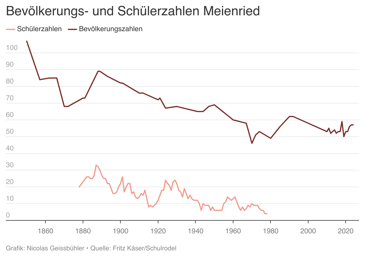 Dass die Schule irgendwann schliessen würde, war kein neues Thema. Schon kurz nach dem Bau des Schulhauses 1809 forderte der Statthalter eine Zusammenlegung mit den Nachbardörfern. Doch Meienried blieb standhaft – das Dorf wollte lieber klein und dafür selbstbestimmt sein. Das war auch 150 Jahre später noch so. «Wenn wir fusionieren, haben wir nichts mehr zu sagen», habe der Gemeindepräsident während Käsers und Weyeneths Jugend jeweils gesagt.