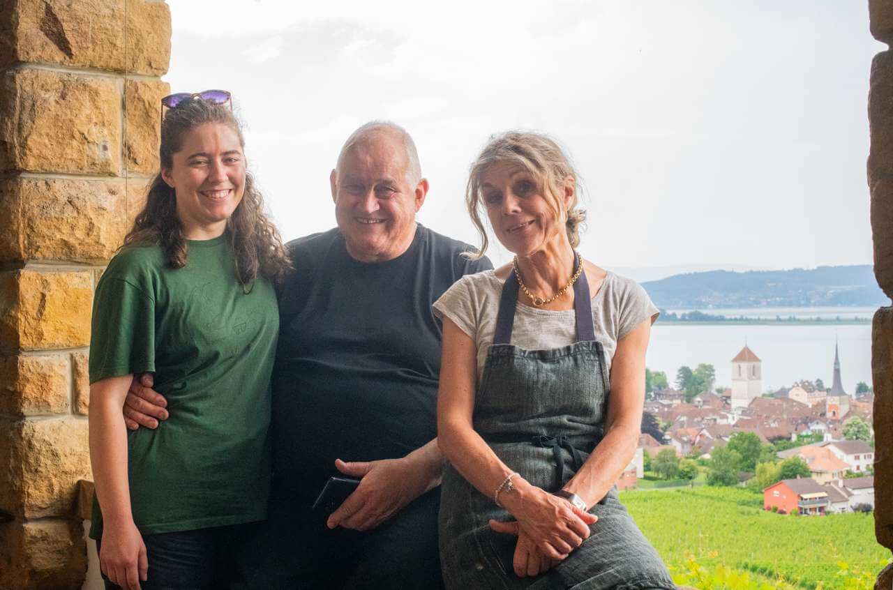 Heute bauen die Petrigs auf rund drei Hektaren in den vier Gemeinden Ligerz, Twann, La Neuveville und Le Landeron fünf Sorten Trauben an, darunter Chasselas, Pinot Gris, Pinot Noir und Gewürztraminer. Alles unter dem Namen «Domain du Schlossberg» und als echter Familienbetrieb: Markus und der Sohn kümmern sich um die Schaumweine, Barbara und die Tochter Anna um die Rotweine und das Gut «Chante Merle».